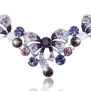 prpura boda nupcial con moo de cristal austriaco collar joyera set caja de regaloオーストリアクリスタルネックレスセットボックスブライダルスイート※注意※NYからの配送になりますので2週間前後お時間をいただきます。