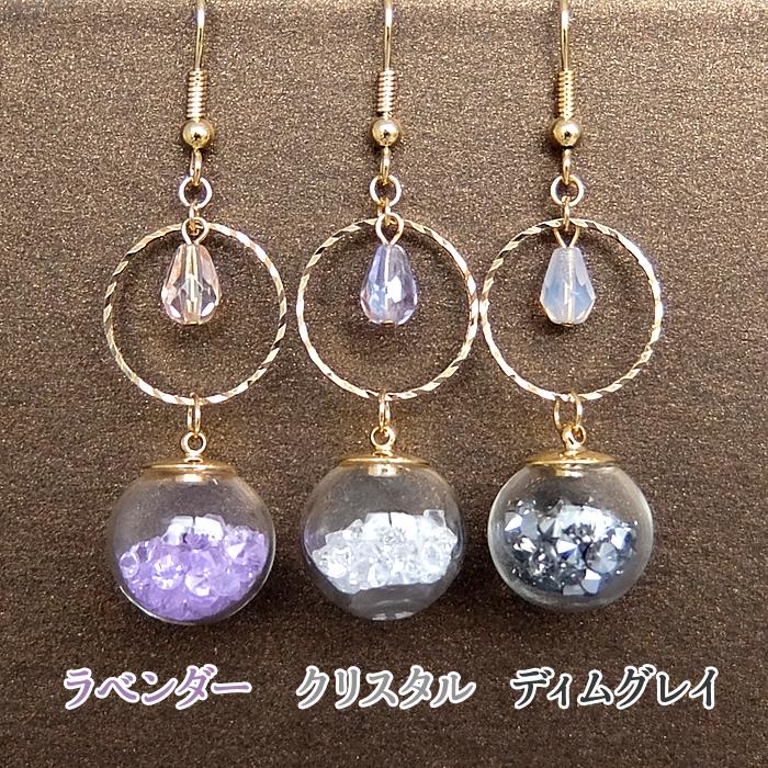 内容量:1ヶ(ピアス左右2ヶ1セット分の材料) ・丸型タイプ 3カラー ・ひし型タイプ 3カラー 内容物 ◆ガラスドーム(ストーン入り) 2ケ 900円 ◆チェコ多面カットドロップ 2ケ 20ー32円 ◆フックピアス 2ケ 80ー83円 ◆その他基礎金具類 複数 200円 以上の内容物が入っています。